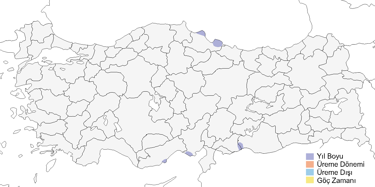 Doğu Anadolu’da, özellikle Sivas ve Muş’taki küçük göllerde üreyen popülasyonun büyük bir kısmı bulunur59. Güneydoğu Anadolu’da Adıyaman Gölbaşı’nda, üremeye uygun habitatlarda haziran ayında kaydedilmiştir60. Karadeniz Bölgesi’nde Kızılırmak Deltası’nda üreyen yaklaşık 50 çift bulunduğu tahmin edilmekte olup, kış aylarında da bu bölgede gözlenmektedir19. Daha önce Yeniçağa Gölü’nde de ürediği bilinen türün, üreme mevsiminde burada 40’tan fazla birey gözlenmiştir; ancak günümüzde bu alanın bu büyüklükte bir popülasyonu barındırması mümkün görünmemektedir. Doğu Anadolu’da üreme döneminde birkaç alanda düşük sayılarda da olsa yaygındır, ancak habitat kaybı ve tahribat nedeniyle lokal seviyede azalma belirtileri mevcuttur. Bu bölgede üreme döneminde Eleşkirt ve Ağrı arasında 40’ın üzerinde bireyin kaydedildiği Mayıs 1970 kaydı, en yüksek sayı olarak bildirilmiştir. İç Anadolu’da birkaç noktada ürediği bilinen türün popülasyonu, sulakalanların kurutulması sonucu belirgin şekilde azalmıştır. Mayıs 1970’de Kurbağa Gölü’nde maksimum 50 çift, Mayıs 1972’de ise 38 çift kaydedilmiştir.