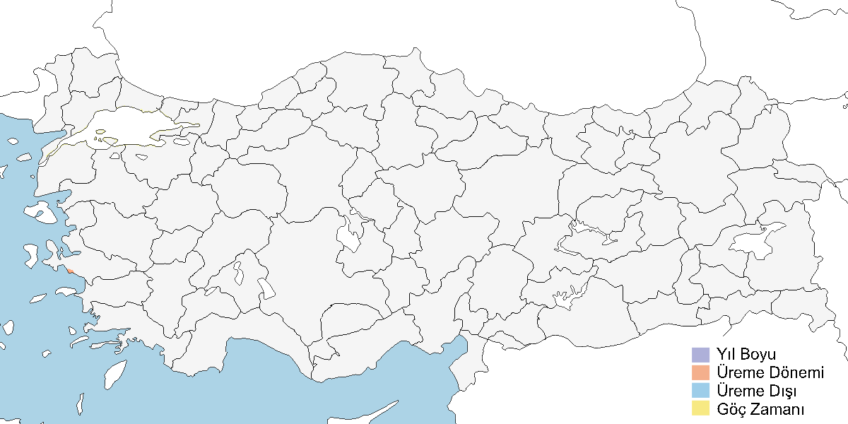 Türkiye’de ürediği bilinmez. Yunanistan’ın Ege Adalarında daha önce iki kez ürediği ispatlanmıştır. Orada muhtemelen düzenli olarak üremektedir (Handrinos ve Akriotis 1997).