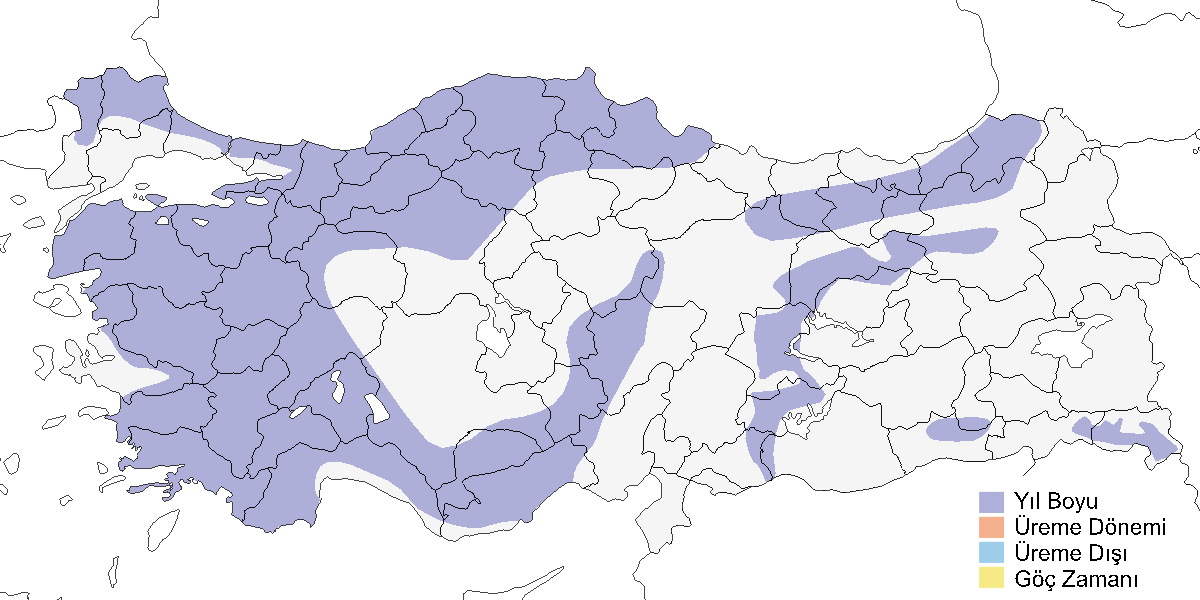 Ekim 1969’da Toroslar’daki Karanfil Dağı’nda alınan bir sonbahar kaydı ile Karadeniz kıyılarındaki ve Ankara’daki kış kayıtları, türün üreme dönemi dışında yer değiştirdiğini ya da yayılışının sanılandan daha geniş olabileceğini düşündürmektedir.